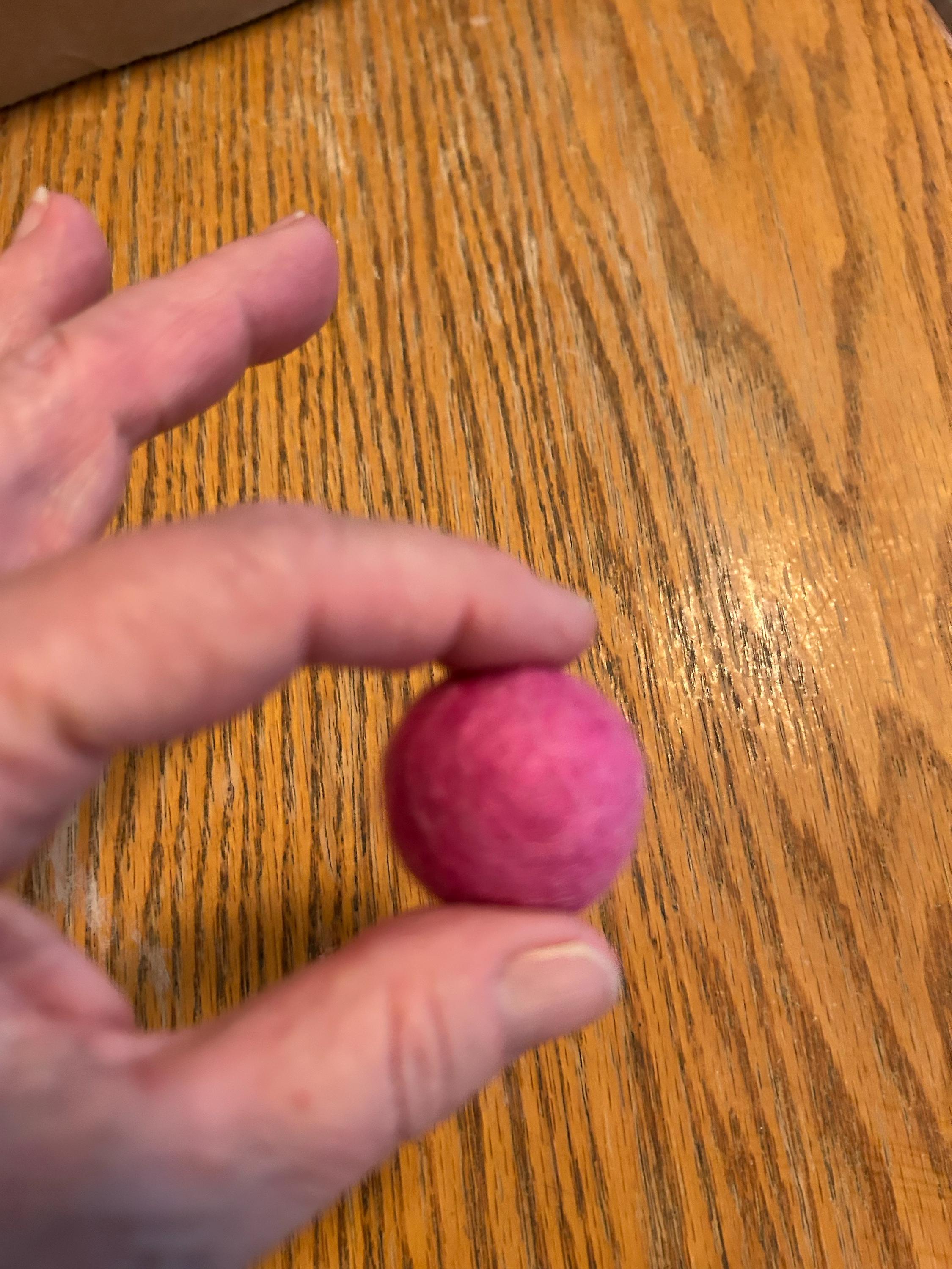 The wool balls are the perfect shade of pink, and they are perfectly shaped in a ball! I can’t get this quality at any of the craft stores in our area! Will definitely be buying some again from this vendor!